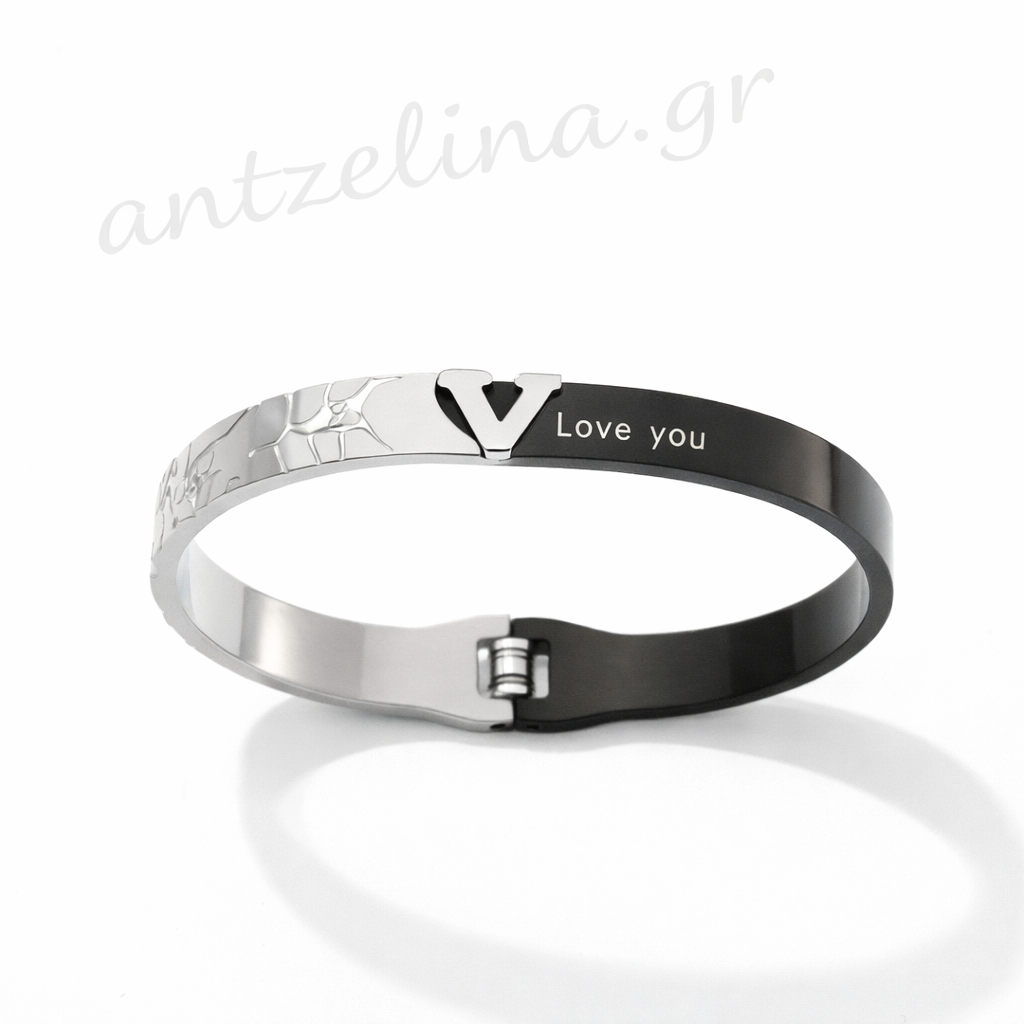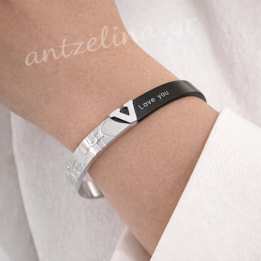 Ένα Βραχιόλι Τύπου V Ασημί από ατσάλι που συνδυάζει διαχρονικό design, συναίσθημα και καθημερινή άνεση.