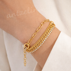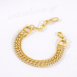 Ένα Βραχιόλι Χρυσό με Στρας από ατσάλι που θα αναβαθμίσει κάθε εμφάνιση με λάμψη και διαχρονικό στυλ.