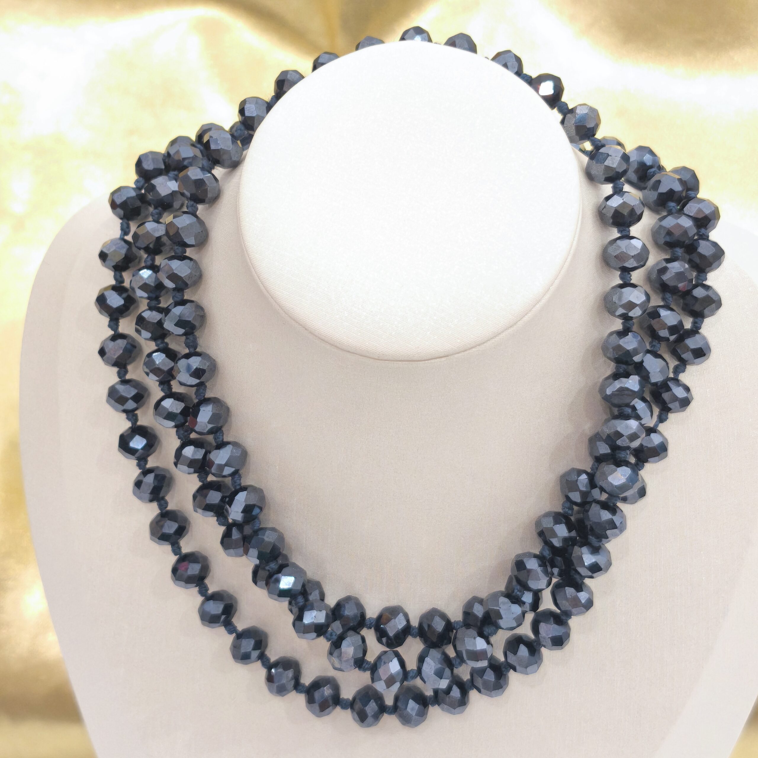 Κολιέ Μακρύ Ανθρακί Χάντρες