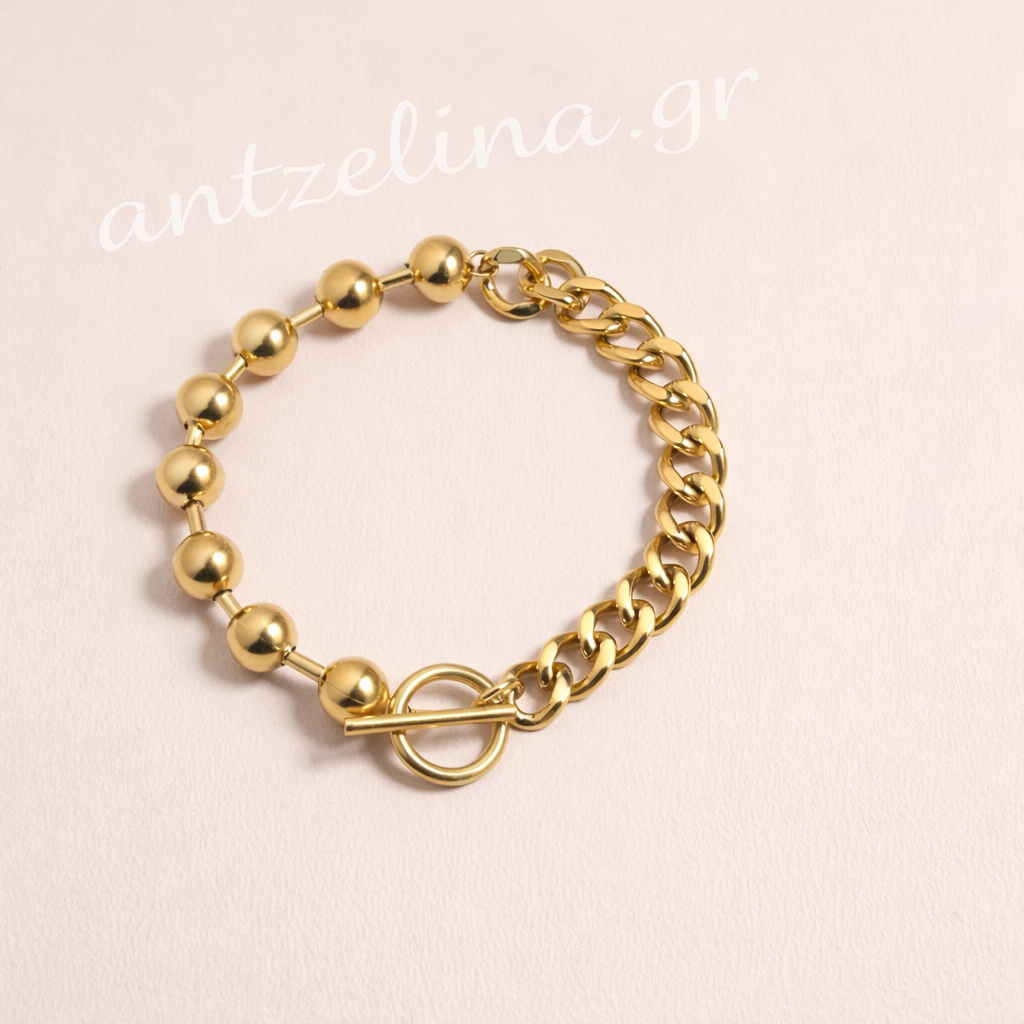 Ένα μοντέρνο και διαχρονικό κόσμημα που συνδυάζει απλότητα και κομψότητα. Ο συνδυασμός λεπτής αλυσίδας με διακοσμητικές μπίλιες δημιουργεί ένα ισορροπημένο και elegant αποτέλεσμα, ιδανικό για κάθε περίσταση.