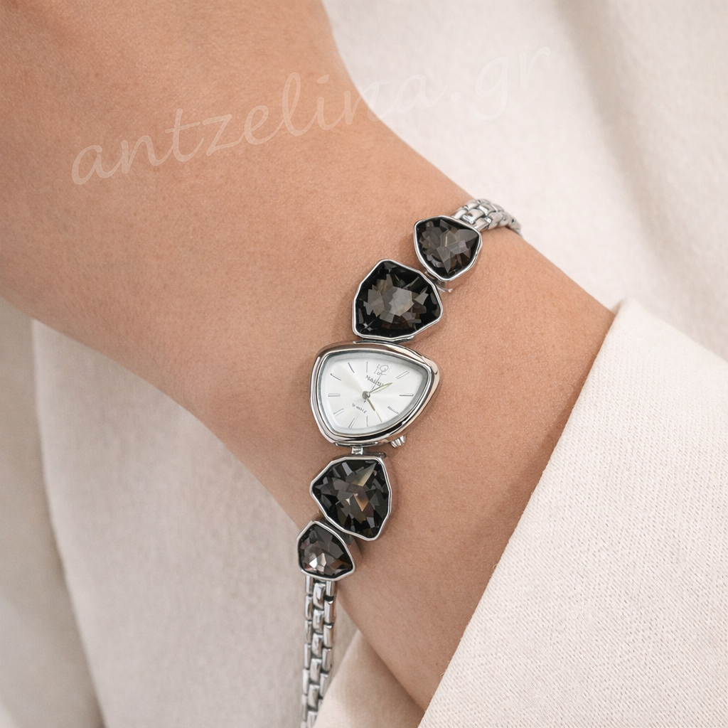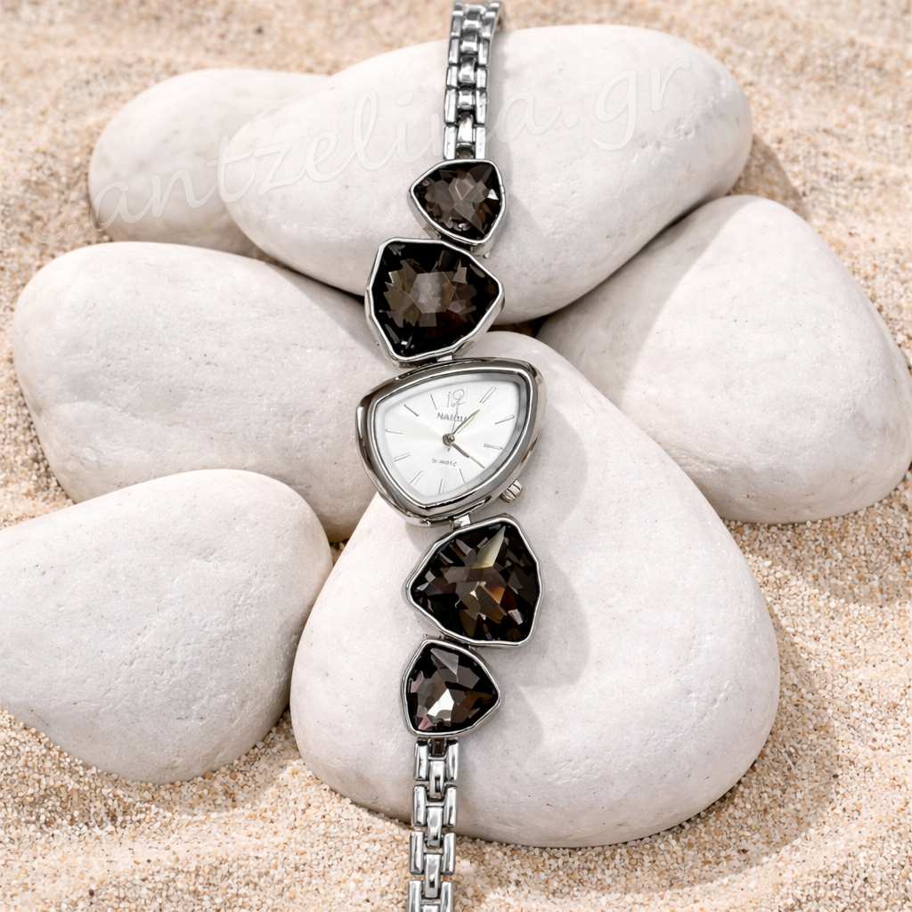 Ένα Ρολόι Βραχιόλι Μαύρα Διαμαντάκια που συνδυάζει διαχρονική κομψότητα και μοντέρνα αισθητική, ιδανικό για κάθε περίσταση.