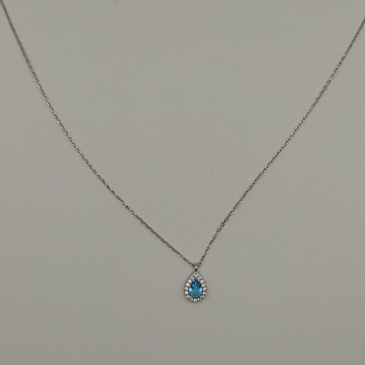 κολιέ 925 διαθέτει μια μοναδική θαλασσί πέτρα ως κεντρικό στοιχείο. Η λαμπερή απόχρωση της πέτρας αναδεικνύει τη λεπτομερή σχεδίαση του κολιέ.