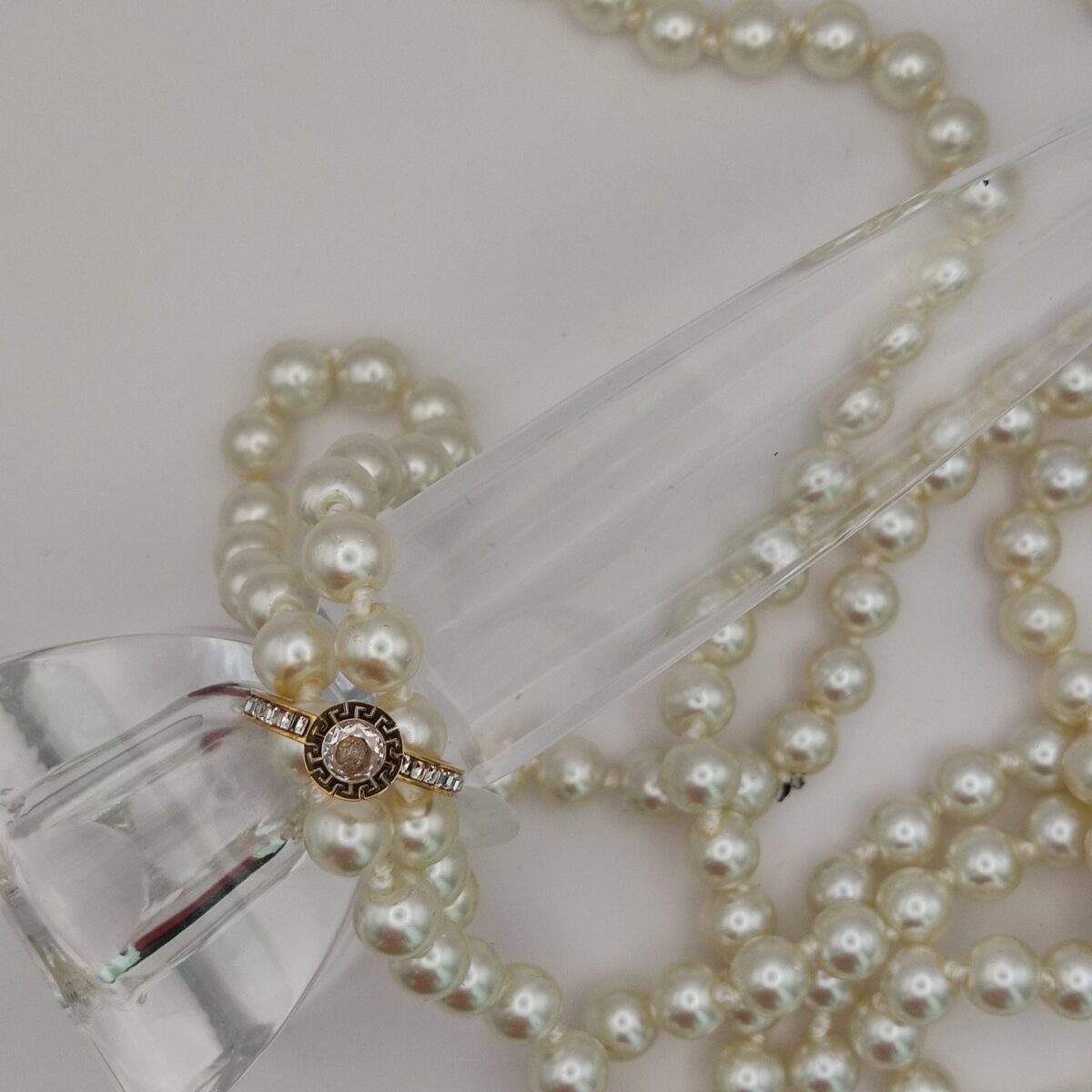 Η λαμπερή λάμψη από τα στρασάκια προσθέτει φινέτσα και εντυπωσιακή λάμψη στο δαχτυλίδι. Ενώ ο σχεδιασμός του μαίανδρου προσδίδει μια αίσθηση μυστηρίου και μοναδικότητας.