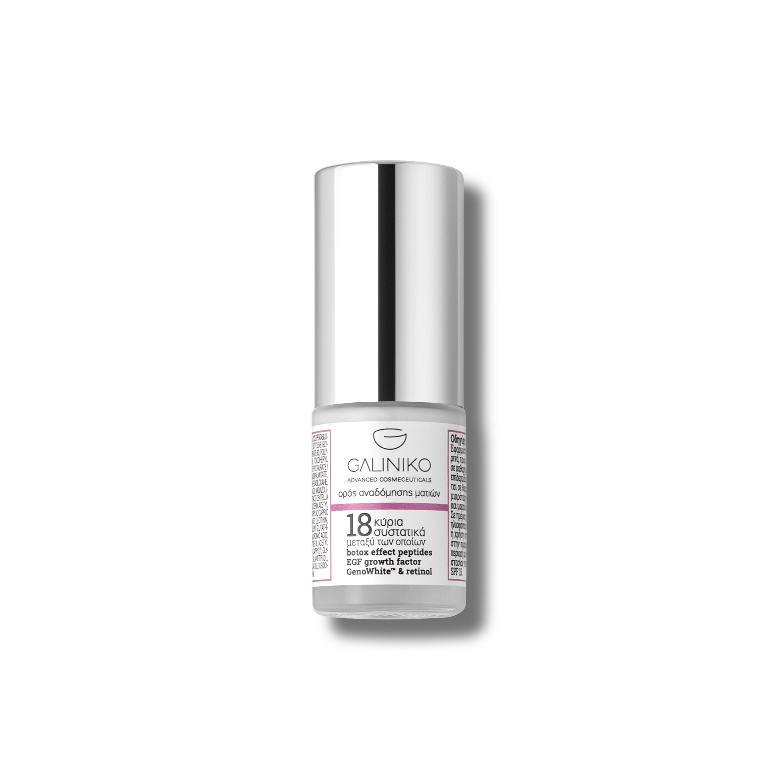 Το Eye Contour Serum της Galiniko ξεφεύγει από τα συνηθισμένα στάνταρ των καλλυντικών προϊόντων. Μεταμορφώνει το βλέμμα σας με τη συνεργική δράση 18 πολύτιμων συστατικών.