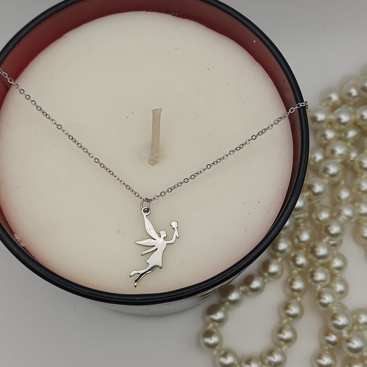 Αυτό το υπέροχο κολιέ αποπνέει μια αίσθηση μαγείας και μυστηρίου με την παρουσία της νεράιδας. Κατασκευασμένο από ανθεκτικό ατσάλι με ασημί φινίρισμα, το κολιέ αυτό διαθέτει μια λεπτομερή ανάγλυφη νεράιδα που αιχμαλωτίζει την φαντασία. Η νεράιδα αποτελεί σύμβολο ομορφιάς και μαγείας, προσδίδοντας μια αίσθηση φαντασίας και θαυμασμού. Αυτό το κολιέ είναι ιδανικό για να προσθέσετε μια δόση μαγείας και μυστηρίου στο στυλ σας, κάνοντας κάθε εμφάνιση να ξεχωρίζει.