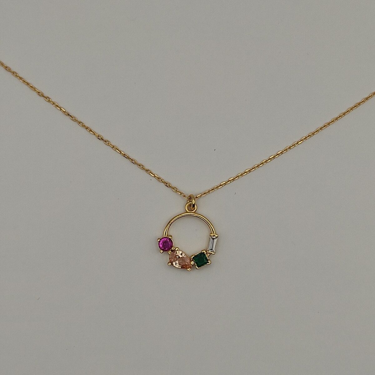 Αυτό το κολιέ αποτελεί μια ζωηρή και εντυπωσιακή επιλογή που θα προσθέσει χρώμα και λάμψη στο στυλ σας. Κατασκευασμένο από γνήσιο ασήμι 925, το κολιέ διαθέτει πολύχρωμες πέτρες που προσδίδουν ζωντάνια και φωτεινότητα. Η μοναδική σχεδίαση του κολιέ και οι πολύχρωμες πέτρες δημιουργούν ένα εντυπωσιακό και δυναμικό αποτέλεσμα. Αυτό το κολιέ είναι ιδανικό για να φωτίσει και να αναβαθμίσει κάθε σας εμφάνιση, προσδίδοντας μια ξεχωριστή πινελιά χρώματος και στυλ.