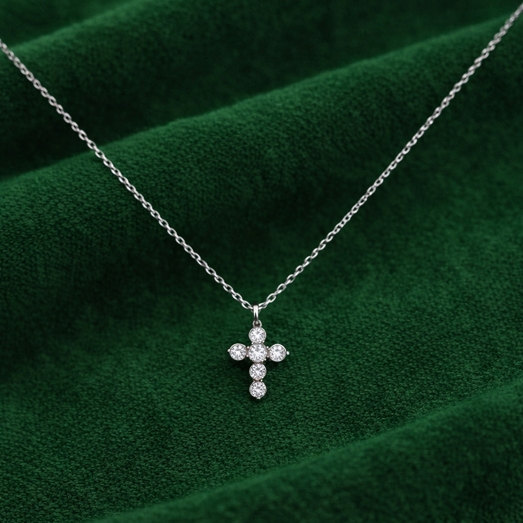Κολιέ 925 ο σταυρός διαθέτει διαμαντάκια που προσδίδουν λάμψη και φωτεινότητα. Η λεπτομερής σχεδίαση του σταυρού και τα λαμπερά διαμαντάκια προσθέτουν πολυτέλεια και εκλεπτυσμένο στυλ στο κολιέ.