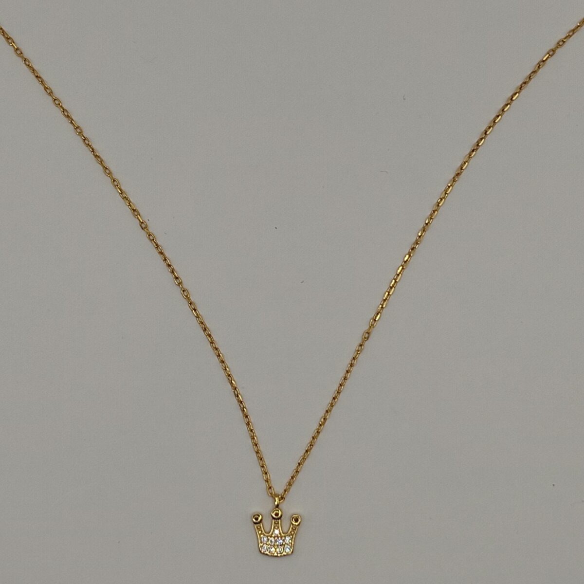 Αυτό το κολιέ αποτελεί μια λαμπερή και εντυπωσιακή επιλογή που θα ξεχωρίσει στο λαιμό σας. Κατασκευασμένο από γνήσιο ασήμι 925 με επιχρύσωση χρυσής απόχρωσης. Η κορώνα διαθέτει λεπτομερή σχέδια που προσδίδουν μια αίσθηση βασιλικής κομψότητας και γοητείας. Η χρυσή απόχρωση προσθέτει μια ζεστή λάμψη και φινέτσα στο κολιέ. Δημιουργώντας ένα μοναδικό και εντυπωσιακό αποτέλεσμα. Αυτό το κολιέ είναι κατάλληλο για κάθε περίσταση και θα προσδώσει μια μοναδική πινελιά βασιλικής γοητείας και κομψότητας στο στυλ σας.