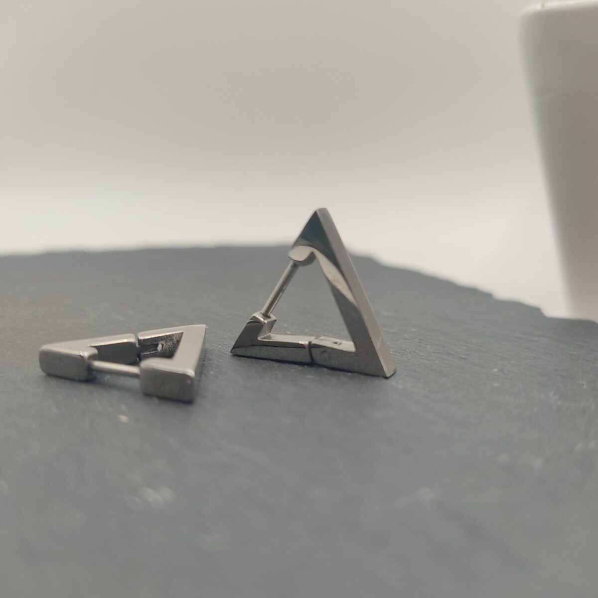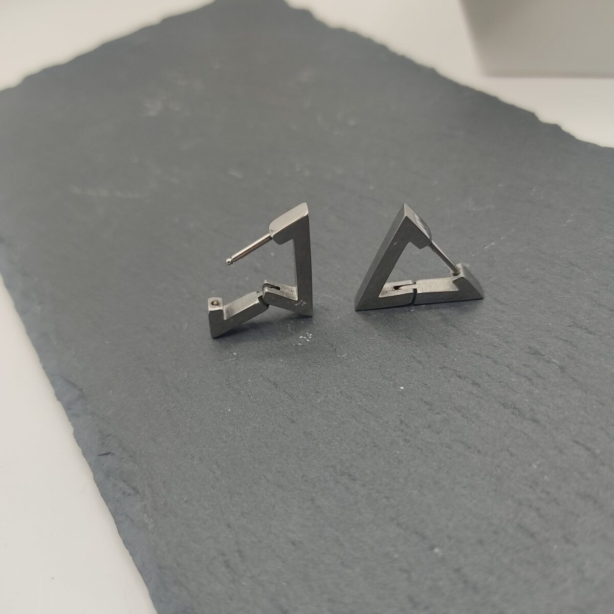 Αυτά τα σκουλαρίκια προσφέρουν ένα μοντέρνο και διακριτικό στυλ. Που μπορεί να συμπληρώσει κάθε εμφάνιση με κομψότητα. Κατασκευασμένα από ανοξείδωτο ατσάλι για ανθεκτικότητα και αντοχή. Αυτά τα σκουλαρίκια διαθέτουν ένα κομψό τρίγωνο σχήμα που προσδίδει μια δόση μοντέρνας αισθητικής στο στυλ σας.Η ασημί απόχρωση προσθέτει ένα διαχρονικό και διακριτικό στοιχείο. Ενώ η διακριτική σχεδίαση τους τα καθιστά κατάλληλα για κάθε περίσταση. Αυτά τα σκουλαρίκια είναι ιδανικά. Για καθημερινή χρήση και μπορούν εύκολα να συνδυαστούν με άλλα κοσμήματα για ένα πιο εντυπωσιακό look.